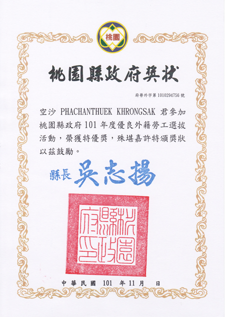 101.11.25 鎵鴻桃園縣優良外國人選拔